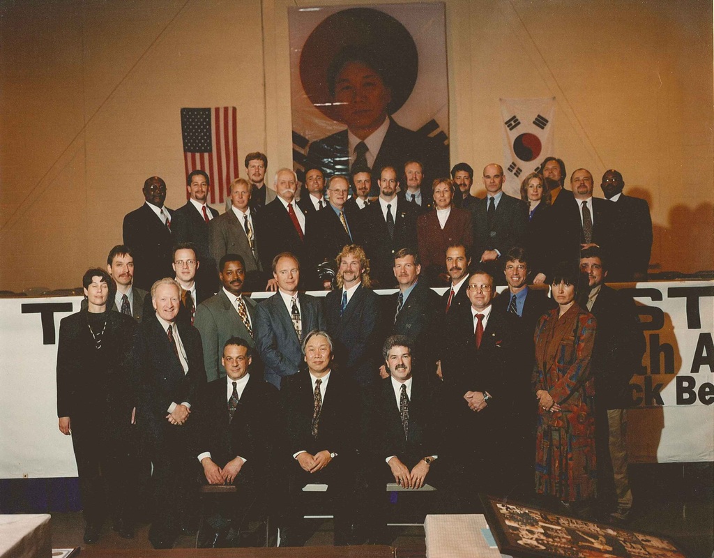 Photo from the 1990's of masters receiving their certificates from Grandmaster Park